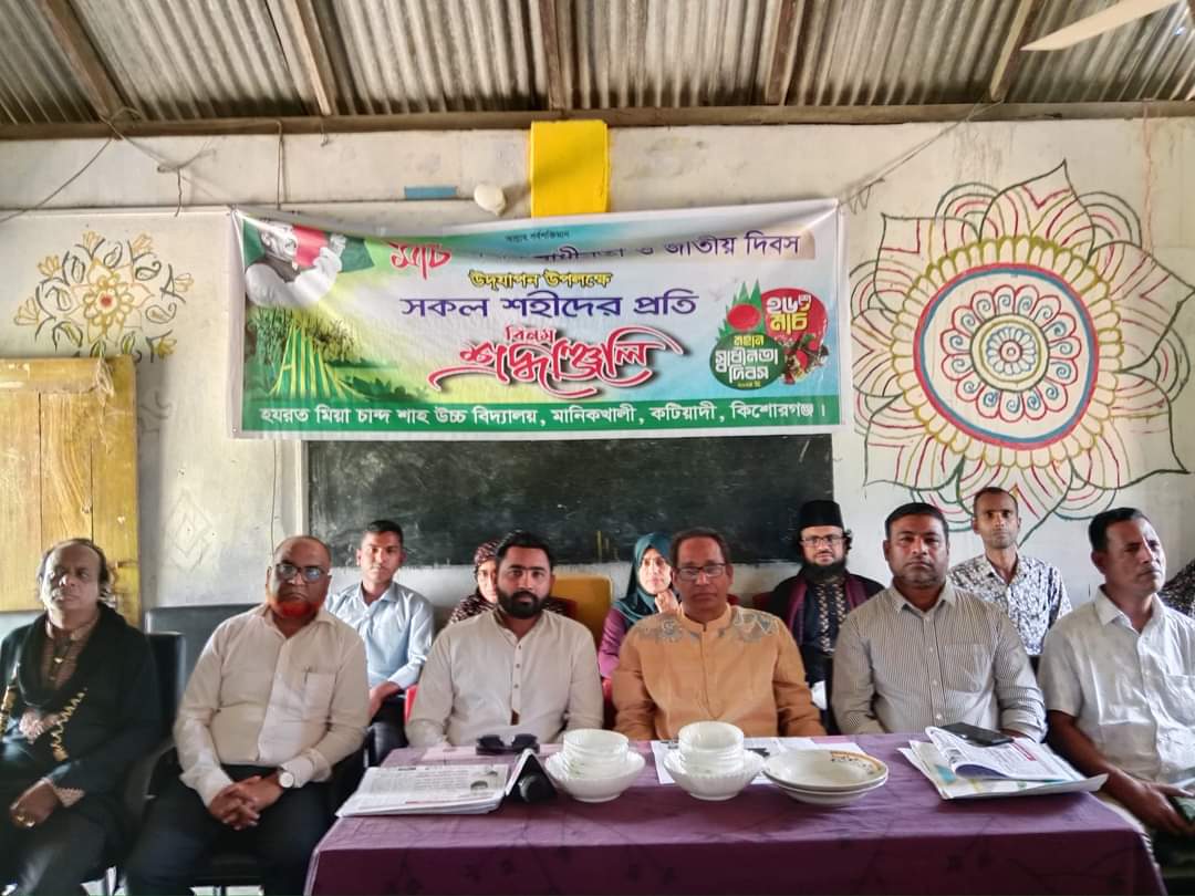 ২৬ মার্চ মহান স্বাধীনতা দিবস উপলক্ষে কিশোরগঞ্জের কটিয়াদী উপজেলার ঐতিহ্যবাহী হযরত মিয়া চান্দ শাহ উচ্চ বিদ্যালয়ে আলোচনা সভা, সাংস্কৃতিক অনুষ্ঠান ও চিত্রাঙ্কন প্রতিযোগিতা অনুষ্ঠিত হয়েছে। মঙ্গলবার বর্ণিল আয়োজনের মধ্য দিয়ে জাতীয় এই দিবসটি পালন করা হয়।